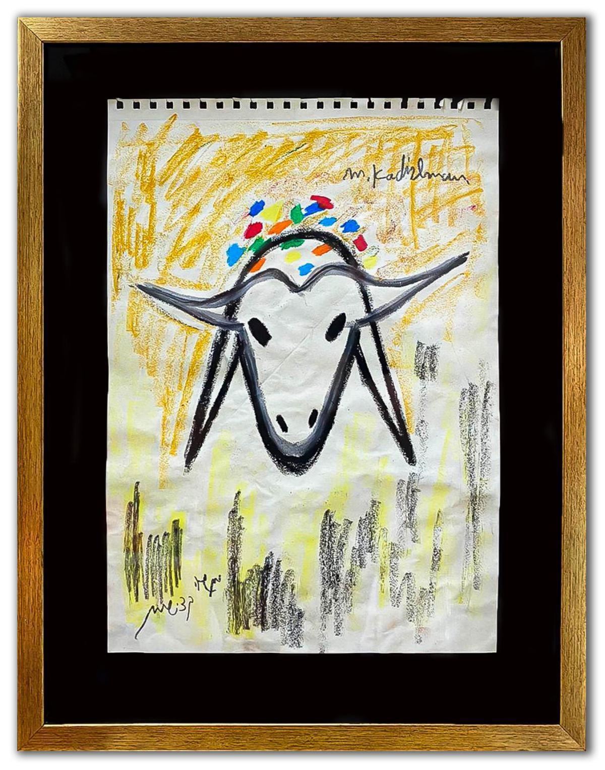 Artist: Menashe Kadishman. Medium: Pastel on Paper. Title: Untitled. Size (Unframed): 16.5" x 12". Size (Framed): 21" x 16". Certificate of Authenticity: Is included. Additional: Original one of a kind. Reference# 13354.