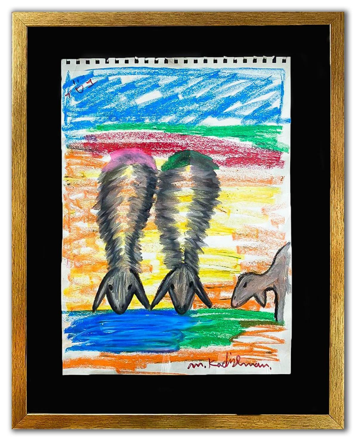 Artist: Menashe Kadishman. Medium: Pastel on Paper. Title: Untitled. Size (Unframed): 16.5" x 12". Size (Framed): 21" x 16". Certificate of Authenticity: Is included. Additional: Original one of a kind. Reference# 13353.