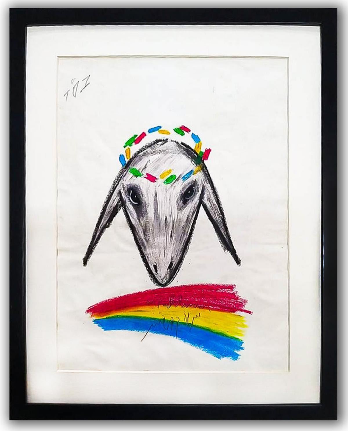 Artist: Menashe Kadishman. Medium: Pastel on Paper. Title: Untitled. Size (Unframed): 16.5" x 12". Size (Framed): 19.5" x 15.5". Certificate of Authenticity: Is included. Additional: Custom framed. Reference# 15765.