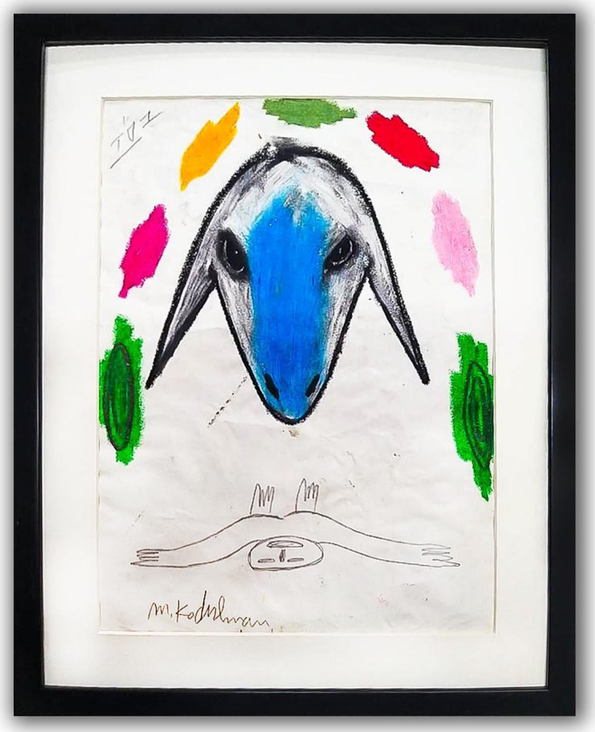 Artist: Menashe Kadishman. Medium: Pastel on Paper. Title: Untitled. Size (Unframed): 16.5" x 12". Size (Framed): 19.5" x 15.5". Certificate of Authenticity: Is included. Additional: Custom framed. Reference# 15766.