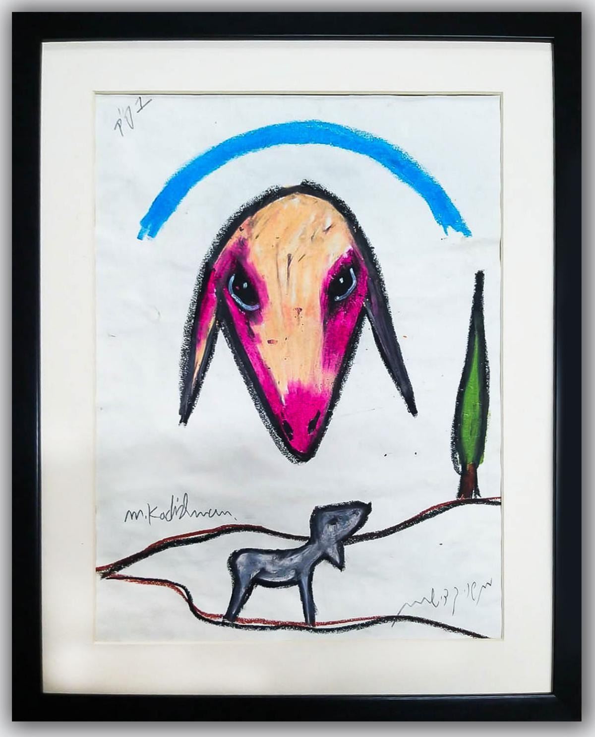 Artist: Menashe Kadishman. Medium: Pastel on Paper. Title: Untitled. Size (Unframed): 16.5" x 12". Size (Framed): 19.5" x 15.5". Certificate of Authenticity: Is included. Additional: Custom framed. Reference# 16178.