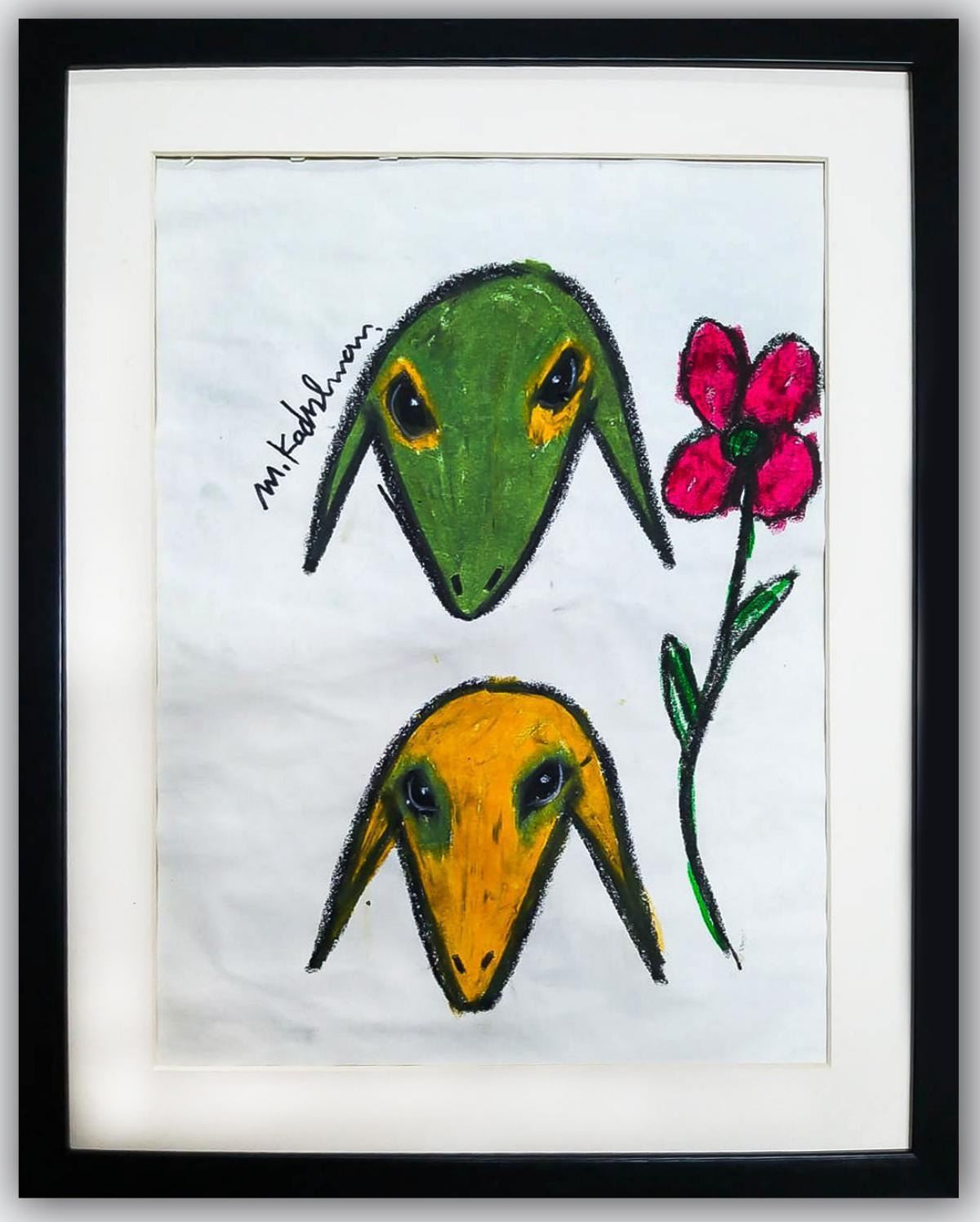 Artist: Menashe Kadishman. Medium: Pastel on Paper. Title: Untitled. Size (Unframed): 16.5" x 12". Size (Framed): 19.5" x 15.5". Certificate of Authenticity: Is included. Additional: Custom framed. Reference# 16172.
