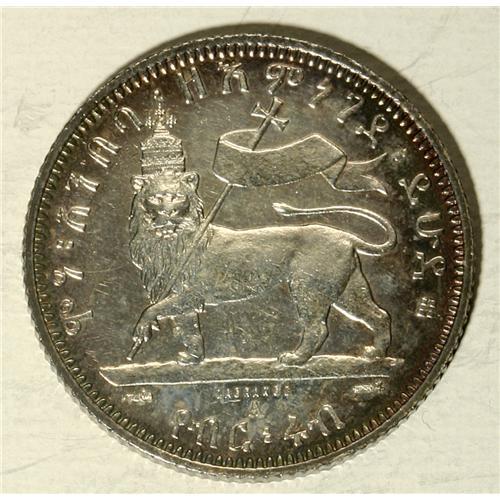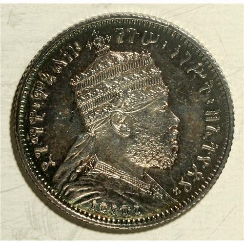 Menelik II 1/4 Bir 1887EE (1895), KM3, deeply toned UNC