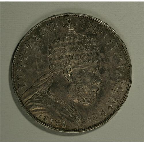 <B>Menelik II Bir (Talari) 1887EE (1895), </B></I>KM5, toned XF, wear evident on the lion's nose and a few small surface marks, very scarce date with a mintage of 20,000.<BR><I>From the Dennis Ritter Collection</B></I><BR><BR><b>Shipping:</b> Coin/Currency (<a target="_blank" href="http://www.heritageauctions.com/common/shipping.php">view shipping information</a>)
