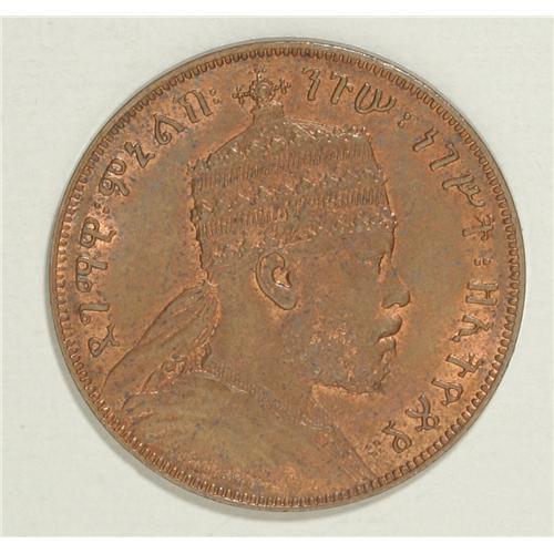 <B>Menelik II - Trio of Choice Minors, </B></I>KM9 1/100 Bir (Talari) 1889EE (1897), two examples, nice brown UNC with full glossy sheen and lustrous UNC, very scarce this nice, and KM12 Gersh (1/20 Bir) 1895EE (1903), choice brilliant UNC.<BR><I>From the Dennis Ritter Collection</B></I><BR><BR><b>Shipping:</b> Coin/Currency (<a target="_blank" href="http://www.heritageauctions.com/common/shipping.php">view shipping information</a>)