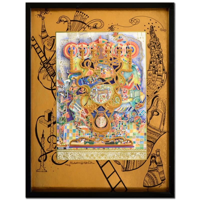 "Menorah" is a limited edition 3-layer decoupage by Raphael Abecassis, numbered and hand signed by the artist. This decoupage is nested in a display box, and can be framed with or without this box. Includes Certificate of Authenticity! Measures approx. 15" x 19.5" (with box), 14.5" x 19" (image).