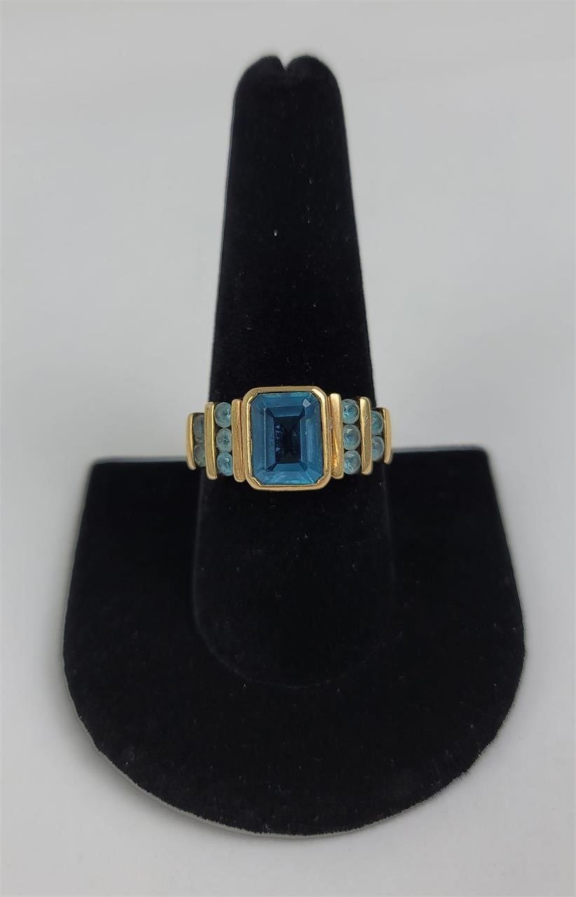 Wonderful ring. Blue Topaz set in 14k Yellow Gold. Weight is 4.64 grams. Size is 10.
