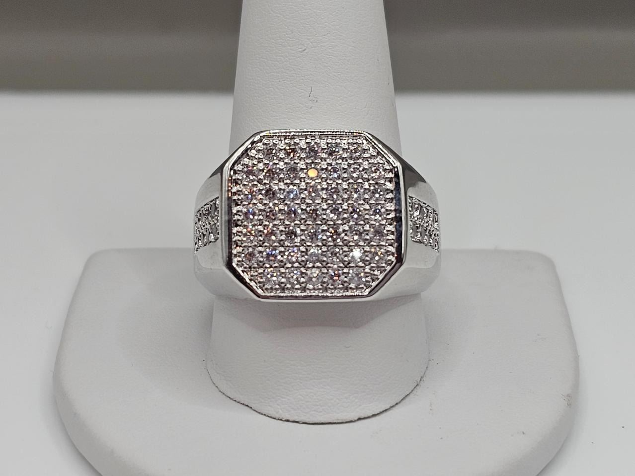 Mens 14 Kt Tri-Layered White Gold Lab Simulated Diamond Ring