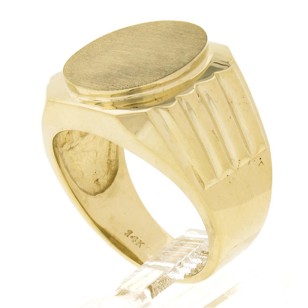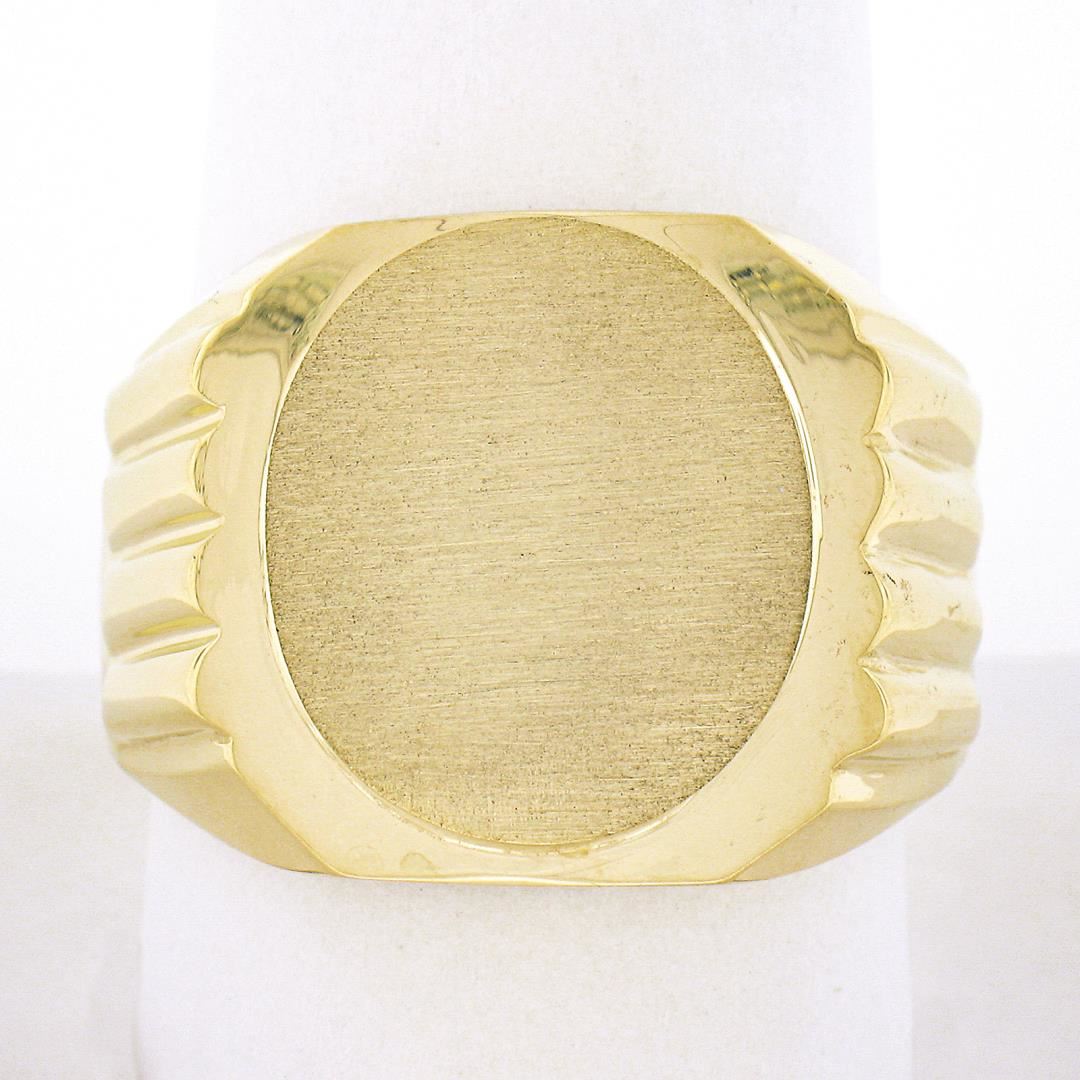 A solid 14k yellow gold signet ring. The ring is size 10.0, weighs a total of 12.60 grams, and measures 17.2mm wide.