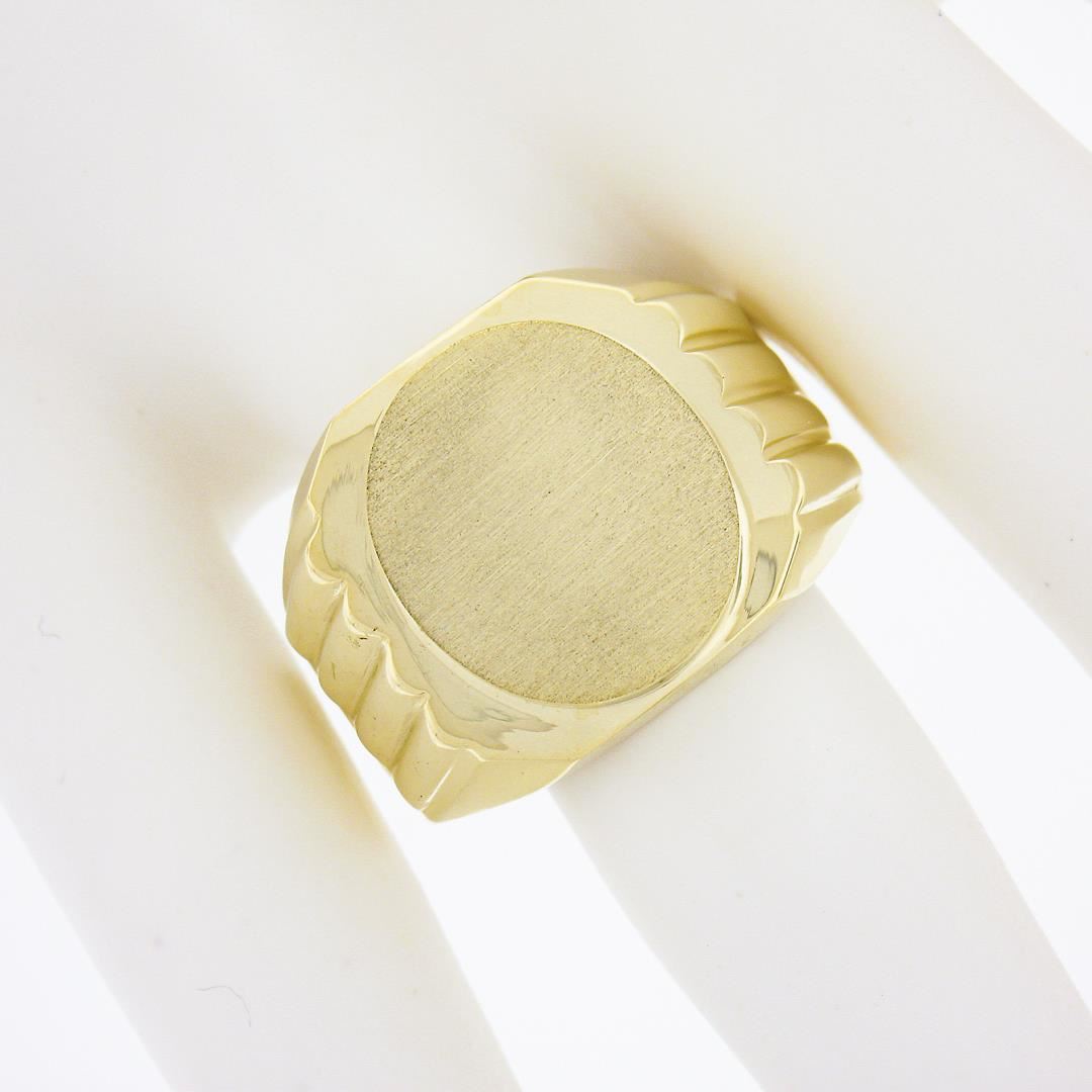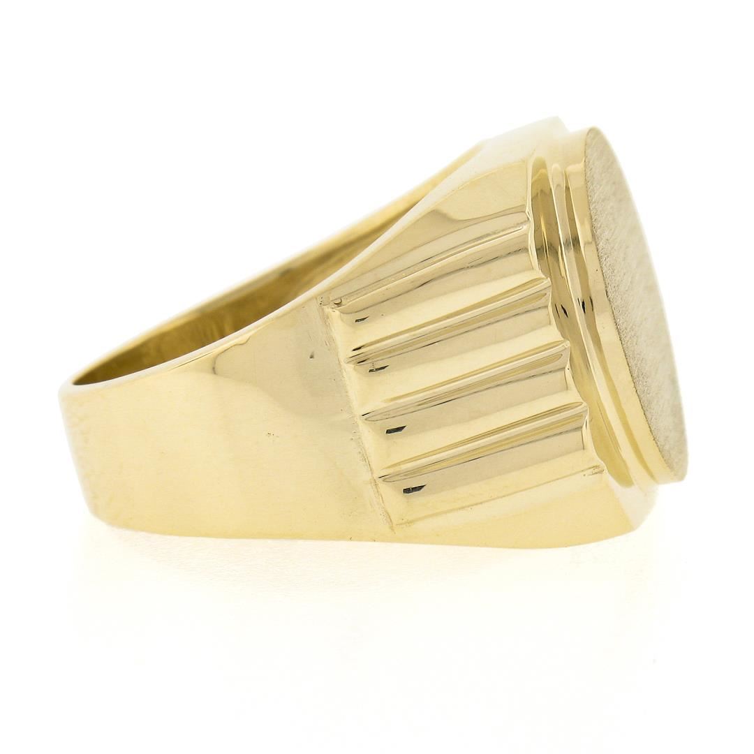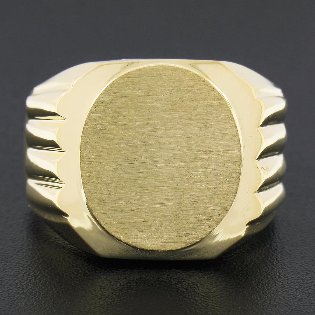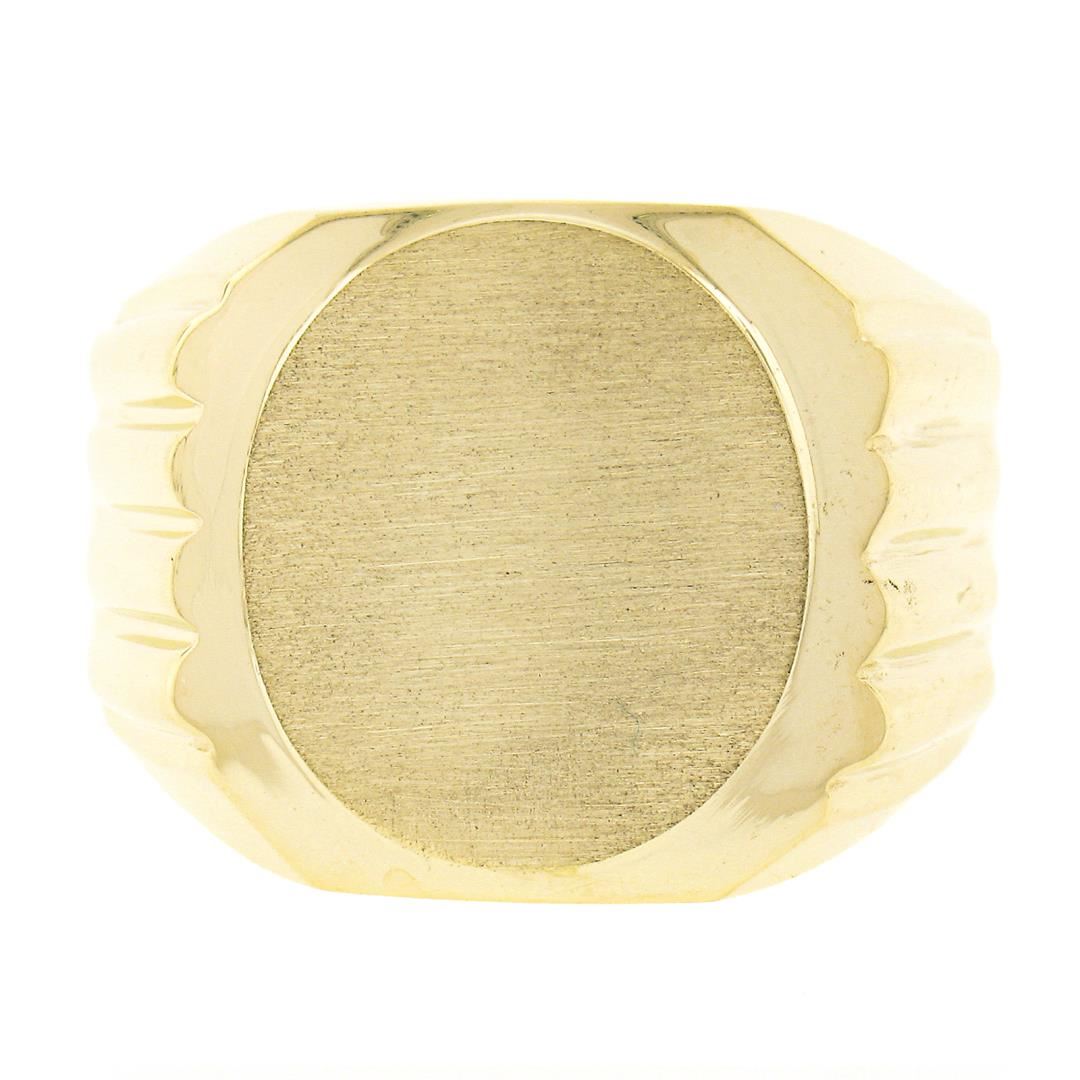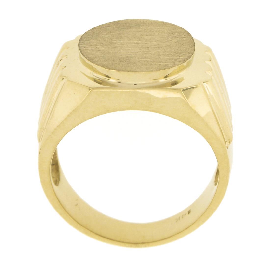 A solid 14k yellow gold signet ring. The ring is size 10.0, weighs a total of 12.60 grams, and measures 17.2mm wide.