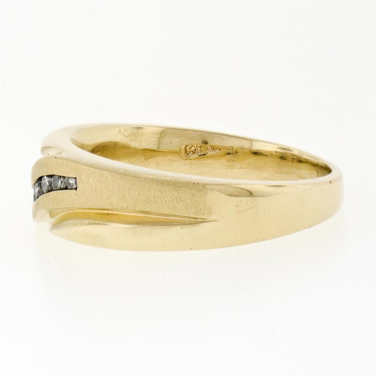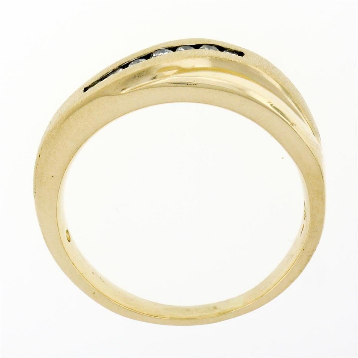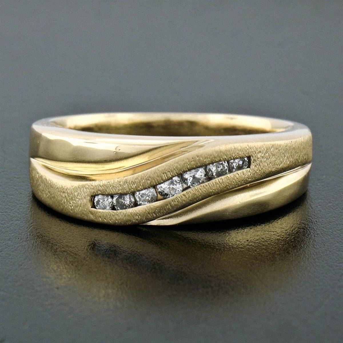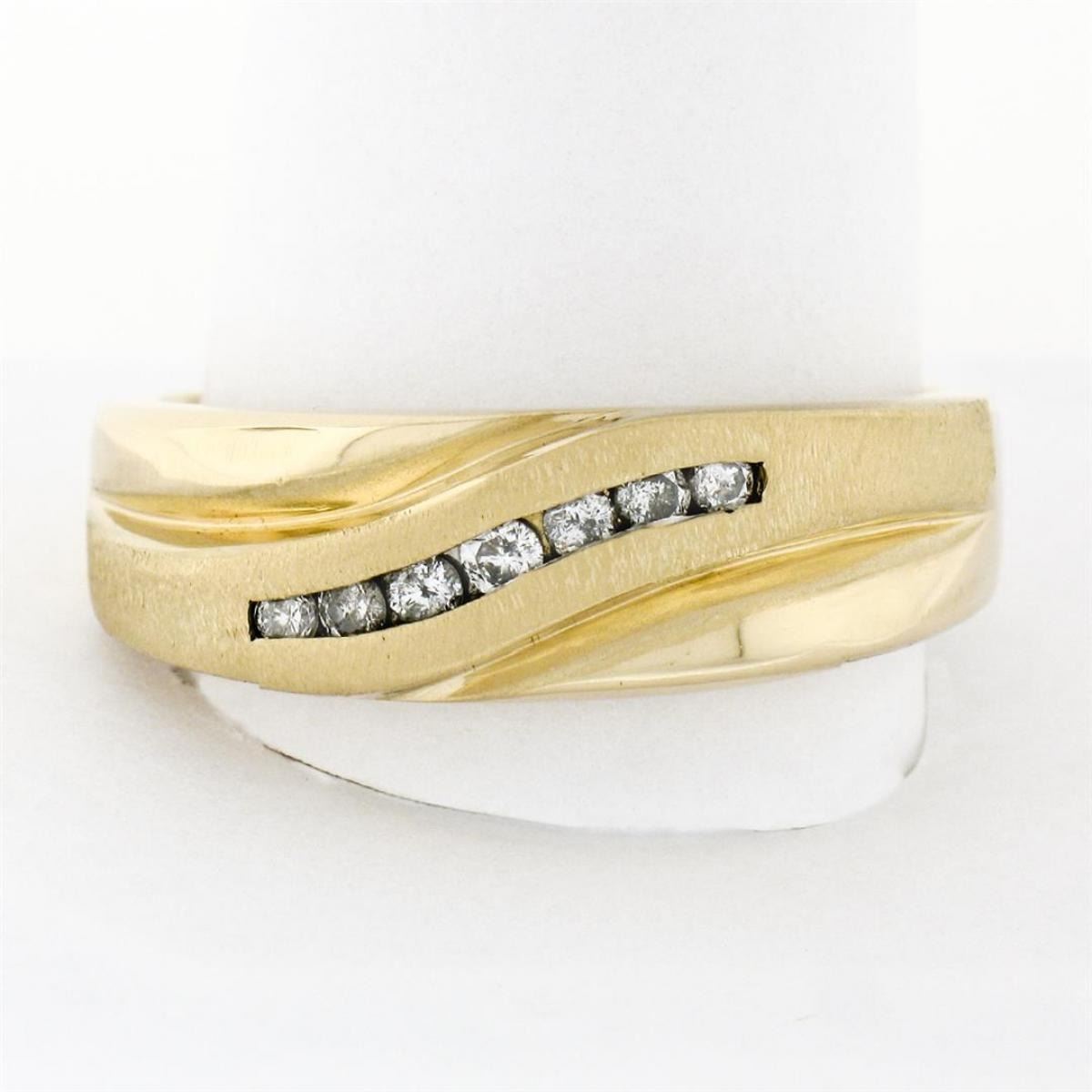 Mens 14k Yellow Gold .18 ctw Round Diamond Wavy Channel Matte & Polished Band Ri