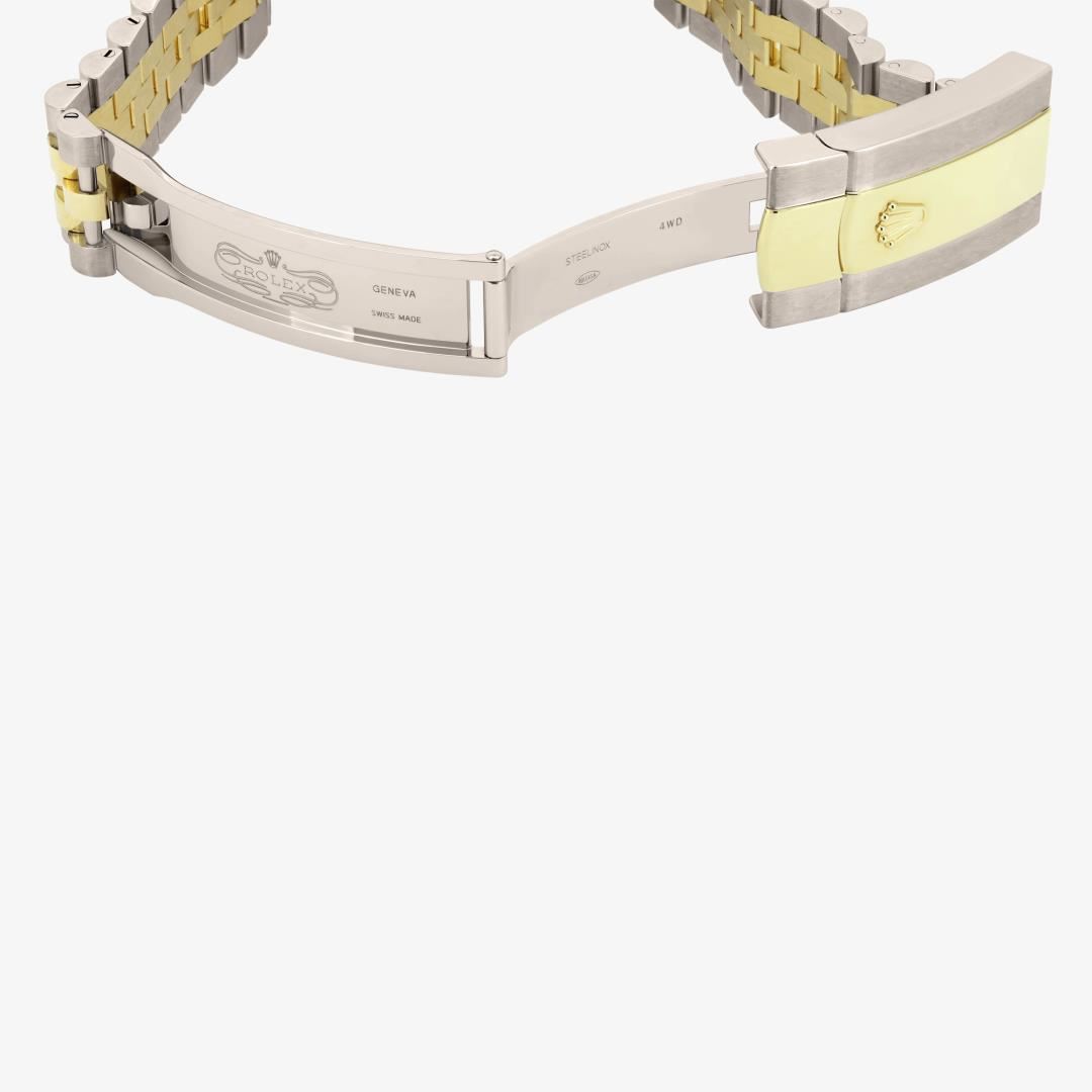 One Mens Pre Owned 18K Yellow Gold And Stainless Steel Rolex Datejust 41MM Polished, Serviced and Electronically Tested, Rolex Yellow Gold and Stainless Steel Case: 41mm, Rolex Yellow Gold Crown, Rolex Bezel: 18K Yellow Gold Fluted Bezel. Crystal: Sapphire With Magnified Date Window. Rolex Hands: Lumi Hands. Rolex Movement: Automatic Winding Movement 3235. Rolex Dial: Factory Black Dial with Luminous Index Hour Markers. Date Window: 3 O'Clock Position Date Display, Quickset, Model: Datejust 41MM. Condition: G-6 Extra Fine. Rolex Bracelet: Two Tone 18K Yellow Gold And Stainless Steel Jubilee Band. Bright Polish. 7.0 Inch Length, Adjustable. Standard Clasp, With Rolex Logo. This Watch Has Been Serviced And Polished It Is Free Of All Scratches And Dents. This Watch Comes With Rolex Box and Card.