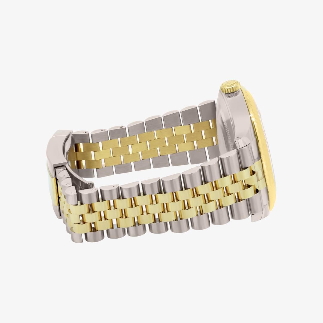 One Mens Pre Owned 18K Yellow Gold And Stainless Steel Rolex Datejust 41MM Polished, Serviced and Electronically Tested, Rolex Yellow Gold and Stainless Steel Case: 41mm, Rolex Yellow Gold Crown, Rolex Bezel: 18K Yellow Gold Fluted Bezel. Crystal: Sapphire With Magnified Date Window. Rolex Hands: Lumi Hands. Rolex Movement: Automatic Winding Movement 3235. Rolex Dial: Factory Black Dial with Luminous Index Hour Markers. Date Window: 3 O'Clock Position Date Display, Quickset, Model: Datejust 41MM. Condition: G-6 Extra Fine. Rolex Bracelet: Two Tone 18K Yellow Gold And Stainless Steel Jubilee Band. Bright Polish. 7.0 Inch Length, Adjustable. Standard Clasp, With Rolex Logo. This Watch Has Been Serviced And Polished It Is Free Of All Scratches And Dents. This Watch Comes With Rolex Box and Card.