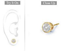 A round diamond is set in a rich 18K yellow gold bezel-setting. This diamond stud earring has a total weight (TDW) of 0.25 carat and is available in either screw-back or push-back.