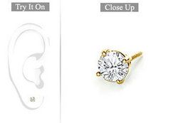 A round diamond is set in a rich 18K yellow gold 4-prong mounting. This diamond stud earring has a total weight (TDW) of 0.25 ct and is available in either screw-back or push-back.
