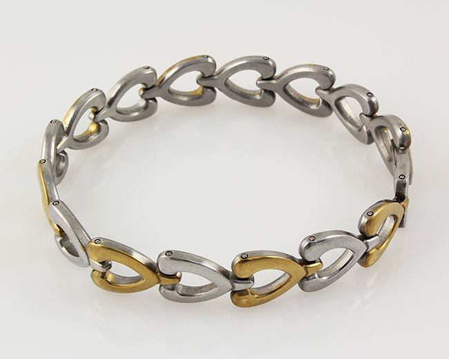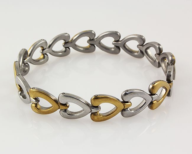 Mens 8.00" Two Tone Plated Stainless Steel Chain Heart **|**|** Mens 8.00" Two Tone Plated Stainless Steel Chain Heart Bracelet ; MSRP: $400