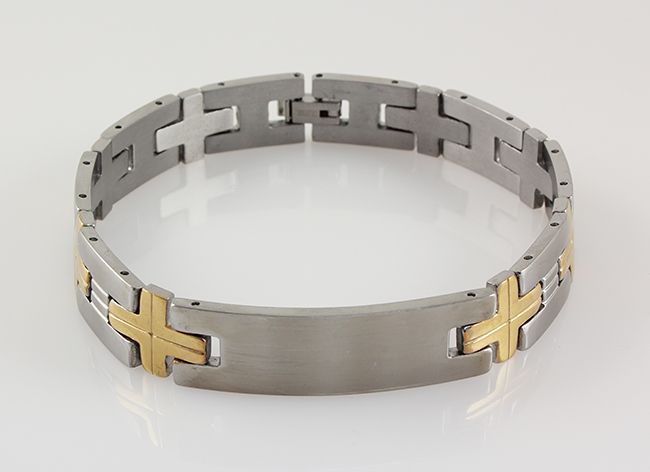 Mens 8.50" Two Tone Plated Stainless Steel ID Bracelet