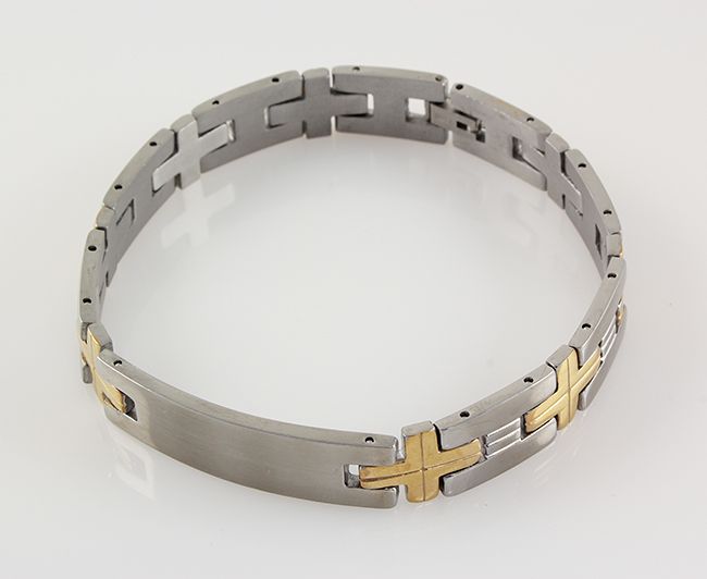 Mens 8.50" Two Tone Plated Stainless Steel ID Bracelet **|**|** Mens 8.50" Two Tone Plated Stainless Steel ID Bracelet ; MSRP: $400