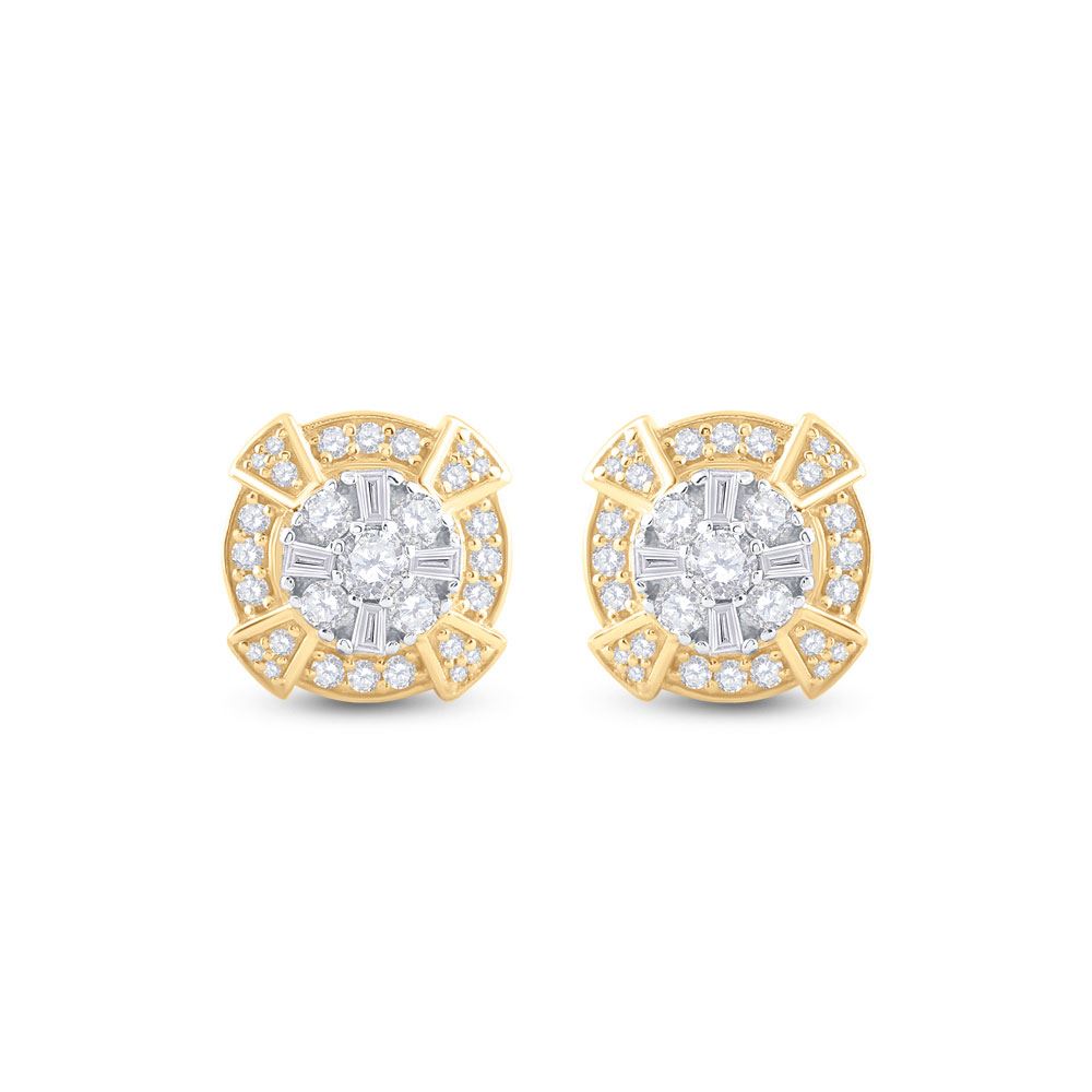 14kt Yellow Gold Mens Baguette Diamond Circle Cluster Earrings 3/4 Cttw