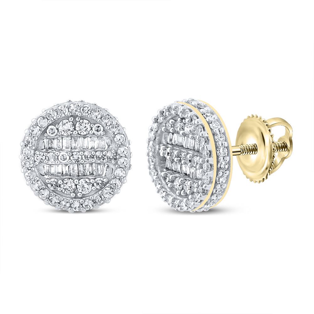 10kt Yellow Gold Mens Baguette Diamond Circle Earrings 1 Cttw