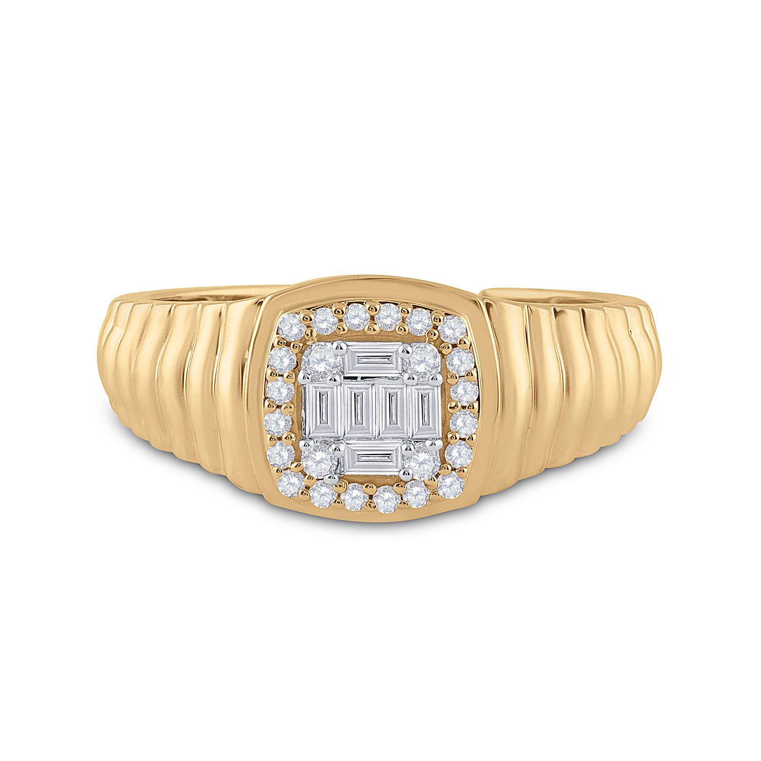 14kt Yellow Gold Mens Baguette Round Diamond Square Ring 1/3 Cttw