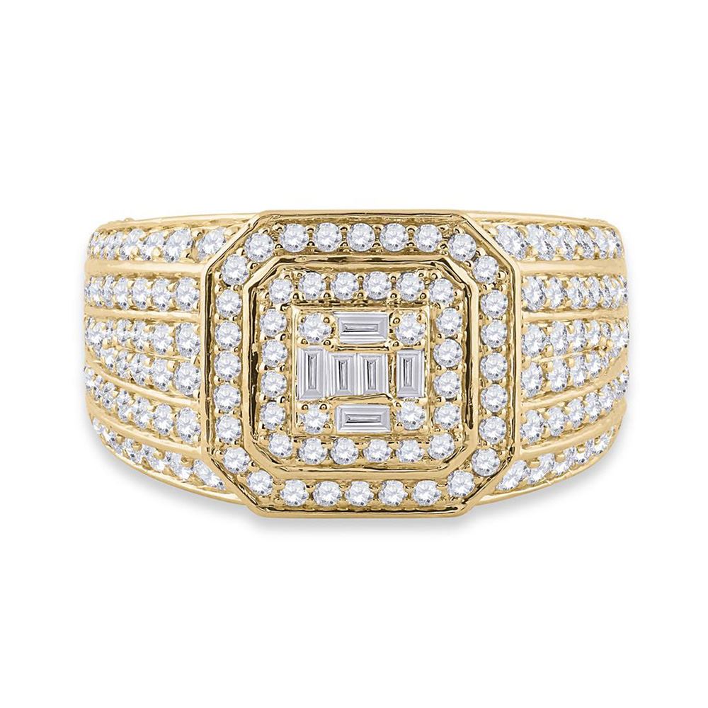 14kt Yellow Gold Mens Baguette Diamond Square Ring 2-1/2 Cttw