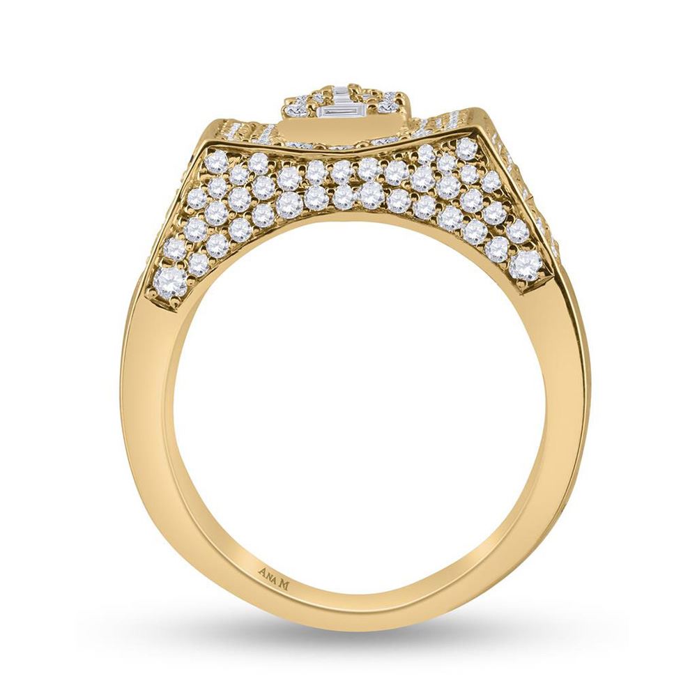 14kt Yellow Gold Mens Baguette Diamond Square Ring 2-3/4 Cttw