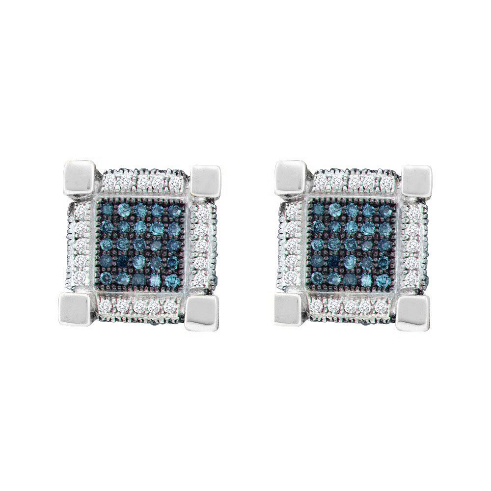 10kt White Gold Mens Round Blue Color Enhanced Diamond 3D Cube Square Earrings 3/4 Cttw