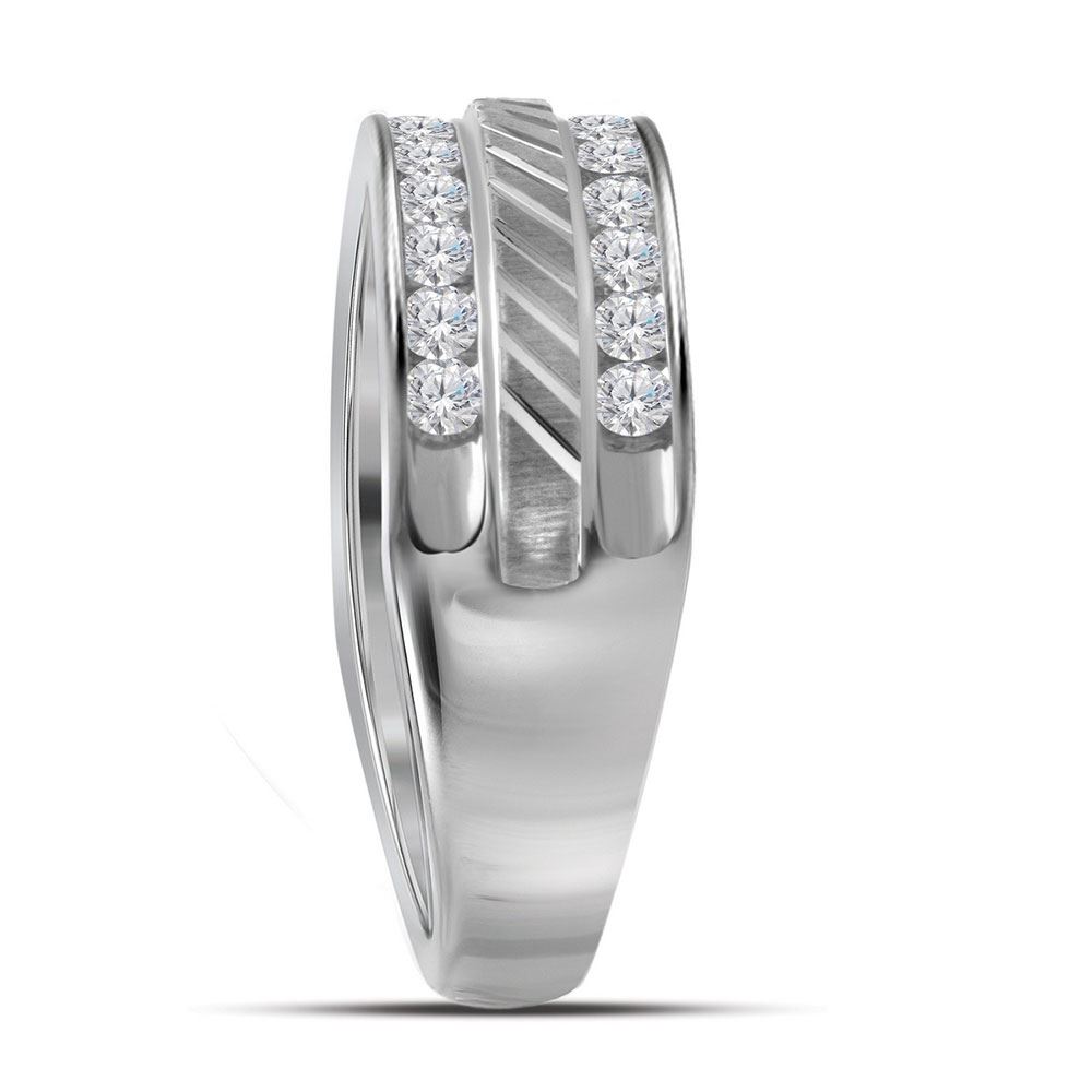 14kt White Gold Mens Round Channel-set Diamond Double Row Grecco Wedding Band Ring 1 Cttw