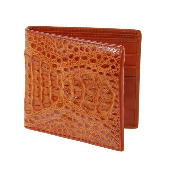 Well made; brand new mens Crocodile Hide wallet. Sought after back skin dyed brown. 4.5" x 4" when folded; multiple card slots; bill slots and license flap inside; $395 retail