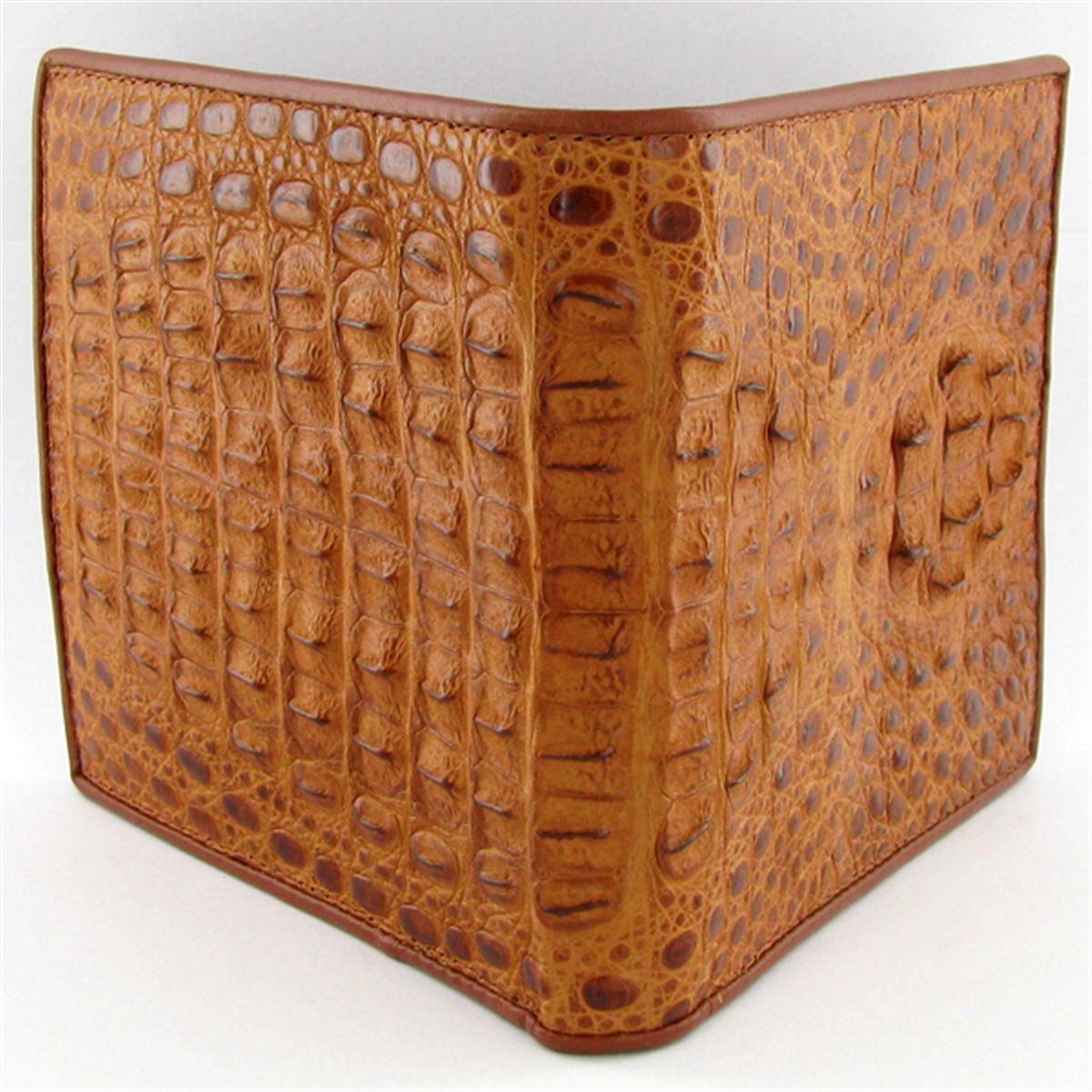 Well made; brand new mens Crocodile Hide wallet. Sought after head back skin dyed brown. 4.5" x 4" when folded; multiple card slots; bill slots and license flap inside; $395 retail