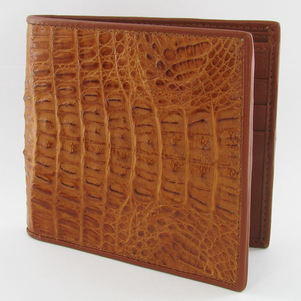 Well made; brand new mens Crocodile Hide wallet. Sought after back skin dyed brown. 4.5" x 4" when folded; multiple card slots; bill slots and license flap inside; $325 retail