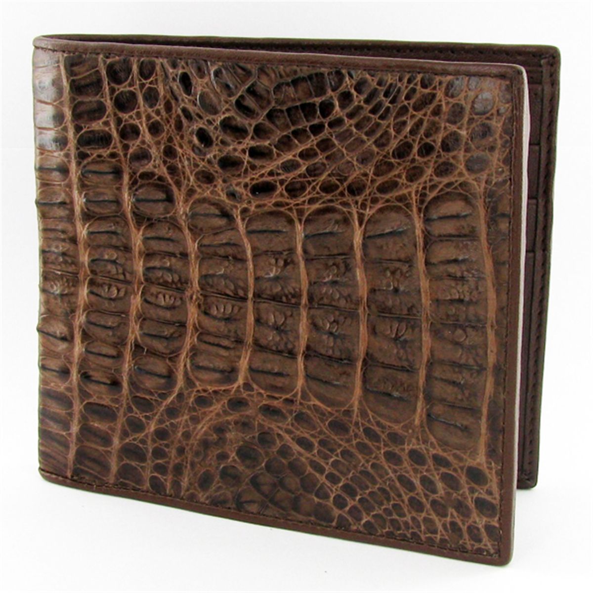 Well made; brand new mens Crocodile Hide wallet. Sought after back skin dyed brown. 4.5" x 4" when folded; multiple card slots; bill slots and license flap inside; $325 retail