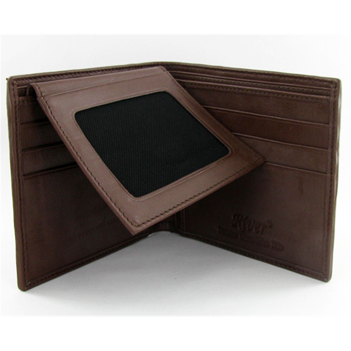 Well made; brand new mens Crocodile Hide wallet. Sought after back skin dyed brown. 4.5" x 4" when folded; multiple card slots; bill slots and license flap inside; $325 retail