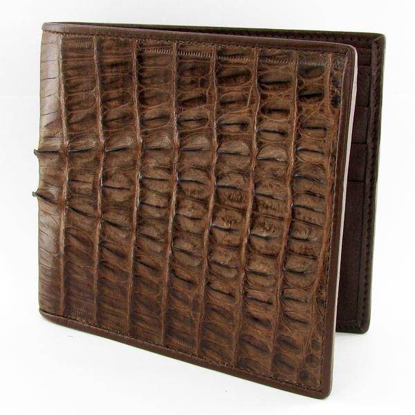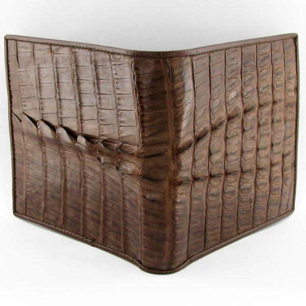 Well made; brand new mens Crocodile Hide wallet. Sought after back skin dyed brown. 4.5" x 4" when folded; multiple card slots; bill slots and license flap inside; $325 retail