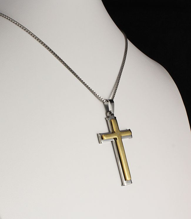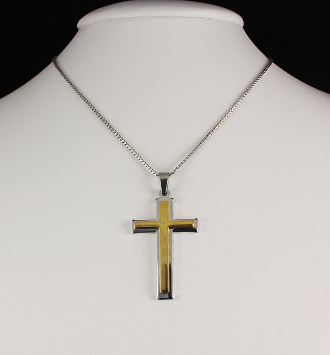 Mens Cross Two Tone Stainless Steel Pendant **|**|** New Fashion Mens Jewelry Two Tone Stainless Steel Pendant with word printed ; MSRP: $0