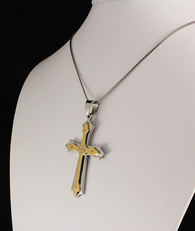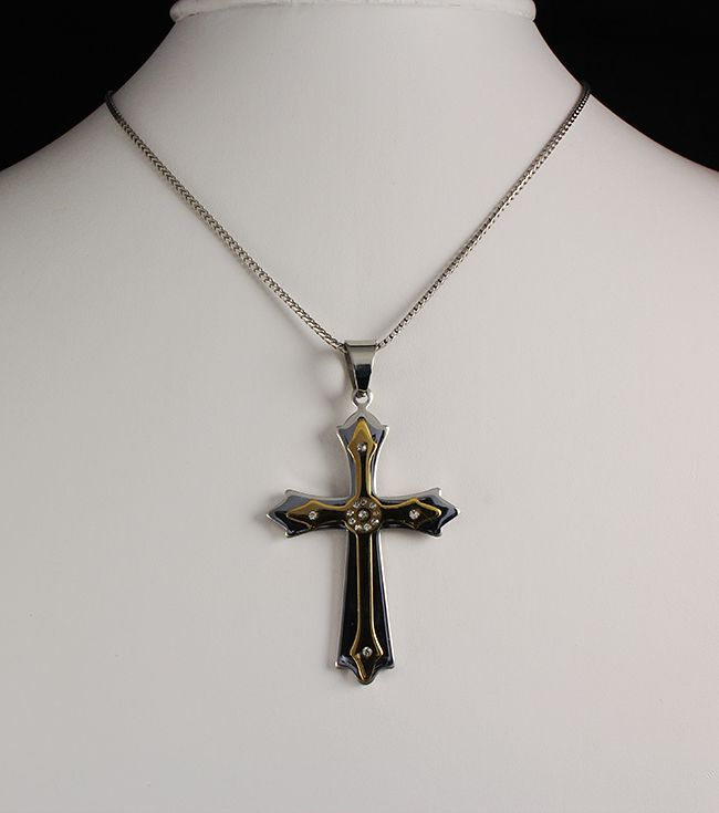 Mens Cross Two Tone Stainless Steel Pendant **|**|** New Fashion Mens Jewelry Two Tone Stainless Steel Pendant with cz ; MSRP: $0