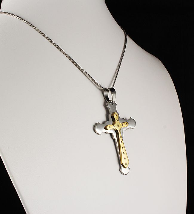 Mens Cross Two Tone Stainless Steel Pendant **|**|** New Fashion Mens Jewelry Two Tone Stainless Steel Pendant with cz ; MSRP: $0