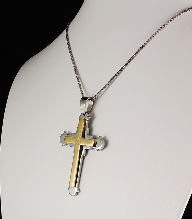 Mens Cross Two Tone Stainless Steel Pendant **|**|** New Fashion Mens Jewelry Two Tone Stainless Steel Pendant with word printed ; MSRP: $0