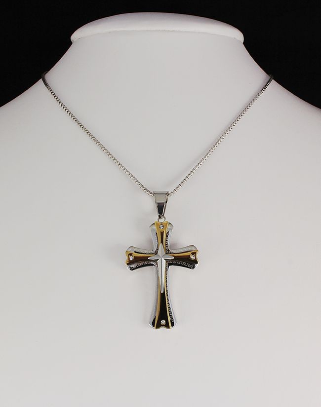 Mens Cross Two Tone Stainless Steel Pendant **|**|** New Fashion Mens Jewelry Two Tone Stainless Steel Pendant with cz ; MSRP: $0