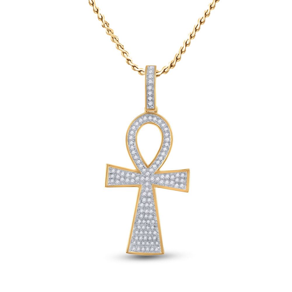 10kt Yellow Gold Mens Round Diamond Ankh Cross Charm Pendant 1/3 Cttw