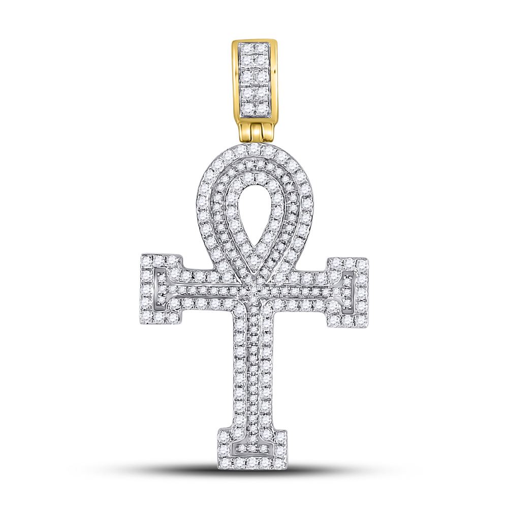 REF-136F4N - SKU: GD149530 ---- Mens Diamond Ankh Cross Charm Pendant 1-5/8 Cttw 14kt Yellow Gold