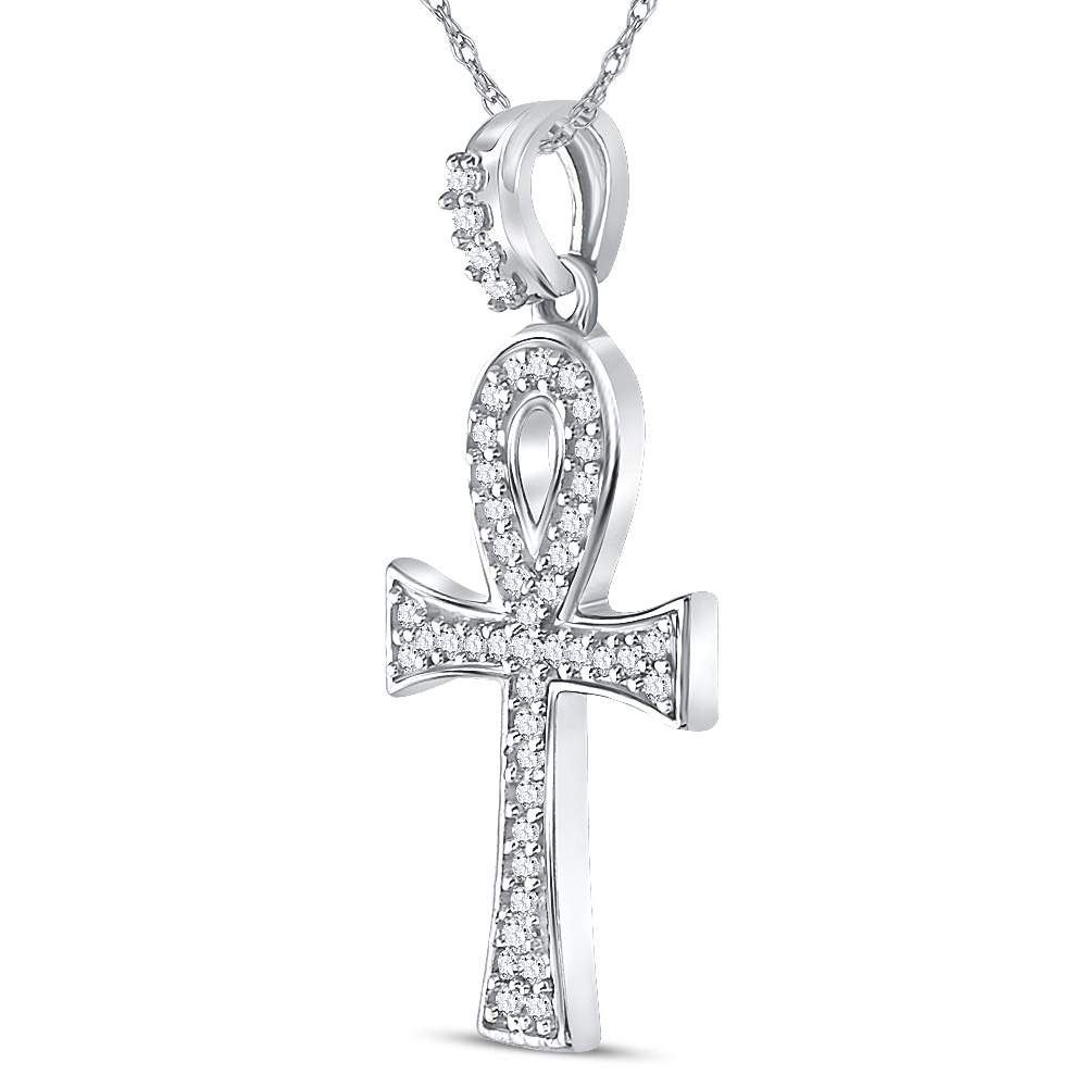 10kt White Gold Mens Round Diamond Ankh Cross Charm Pendant 1/5 Cttw