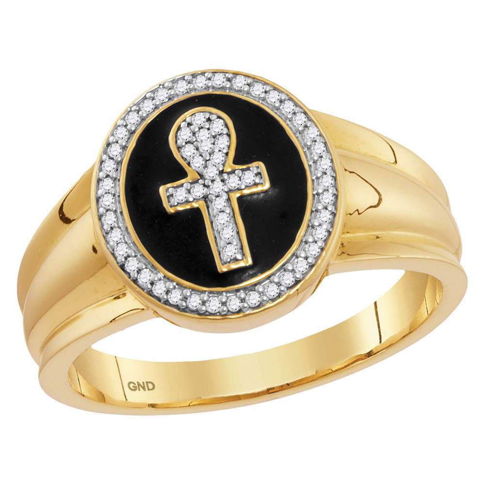 10kt Yellow Gold Mens Round Diamond Ankh Cross Fashion Ring 1/6 Cttw