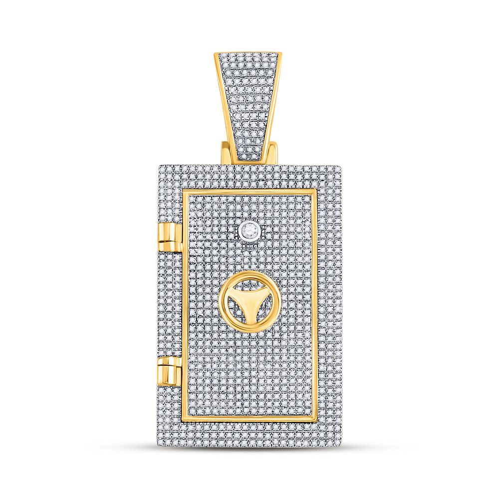 REF-163X6Y - SKU: GD120088 ---- Mens Diamond Bank Safe Vault Charm Pendant 1-1/3 Cttw 10kt Yellow Gold