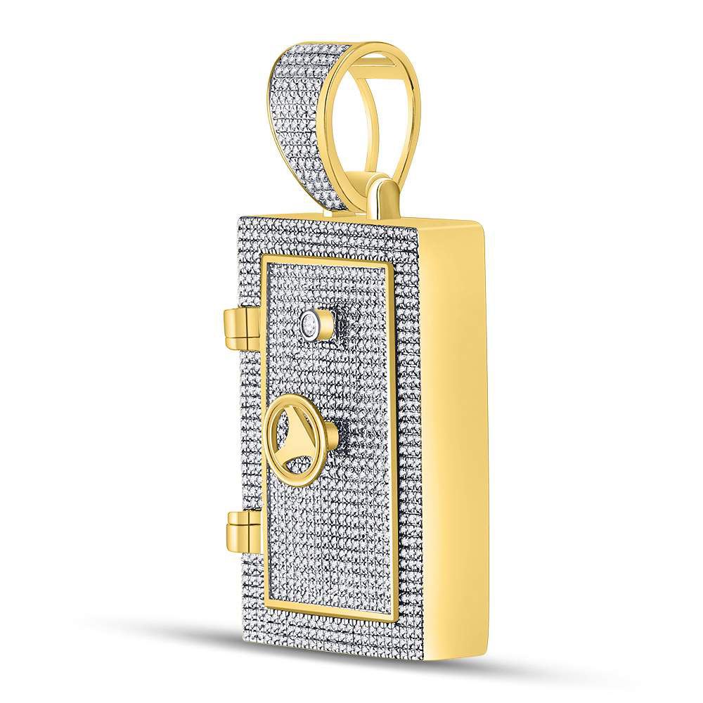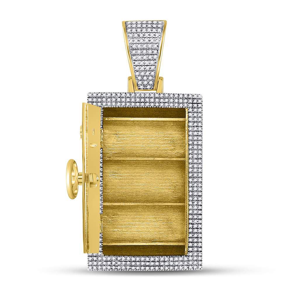 10kt Yellow Gold Mens Round Diamond Bank Safe Vault Charm Pendant 1-1/3 Cttw
