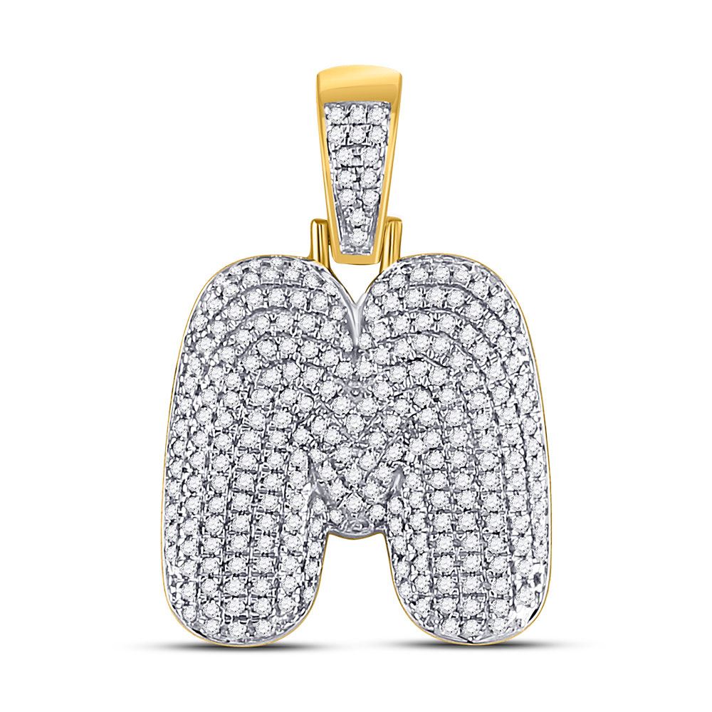 10kt Yellow Gold Mens Round Diamond Bubble M Letter Charm Pendant 3/4 Cttw