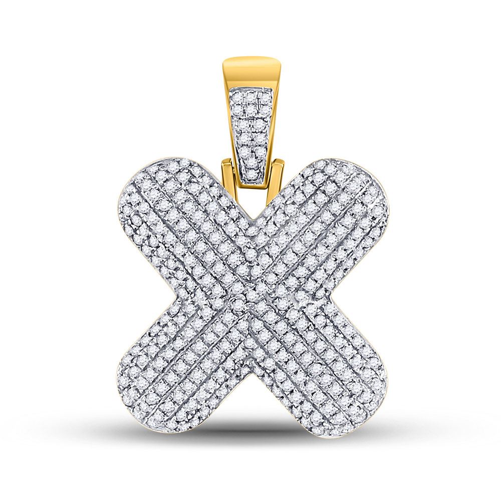 10kt Yellow Gold Mens Round Diamond Bubble X Letter Charm Pendant 7/8 Cttw