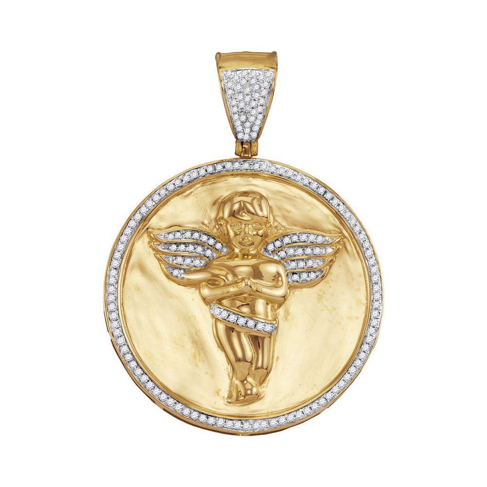 REF-60Y9X - SKU: GD114692 ---- Mens Diamond Circle Angel Cherub Medallion Charm Pendant 1/2 Cttw 10kt Yellow Gold