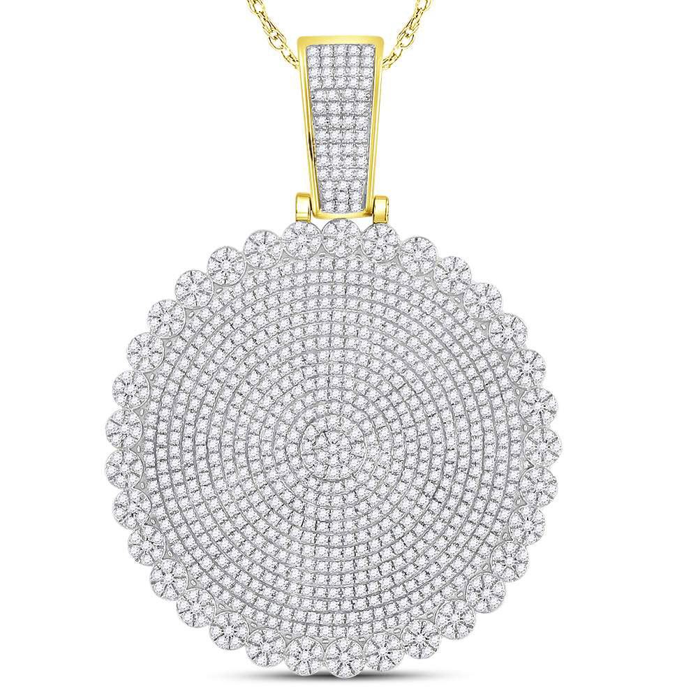 REF-158W2H - SKU: GD115353 ---- Mens Diamond Circle Cluster Charm Pendant 2-3/4 Cttw 10kt Yellow Gold